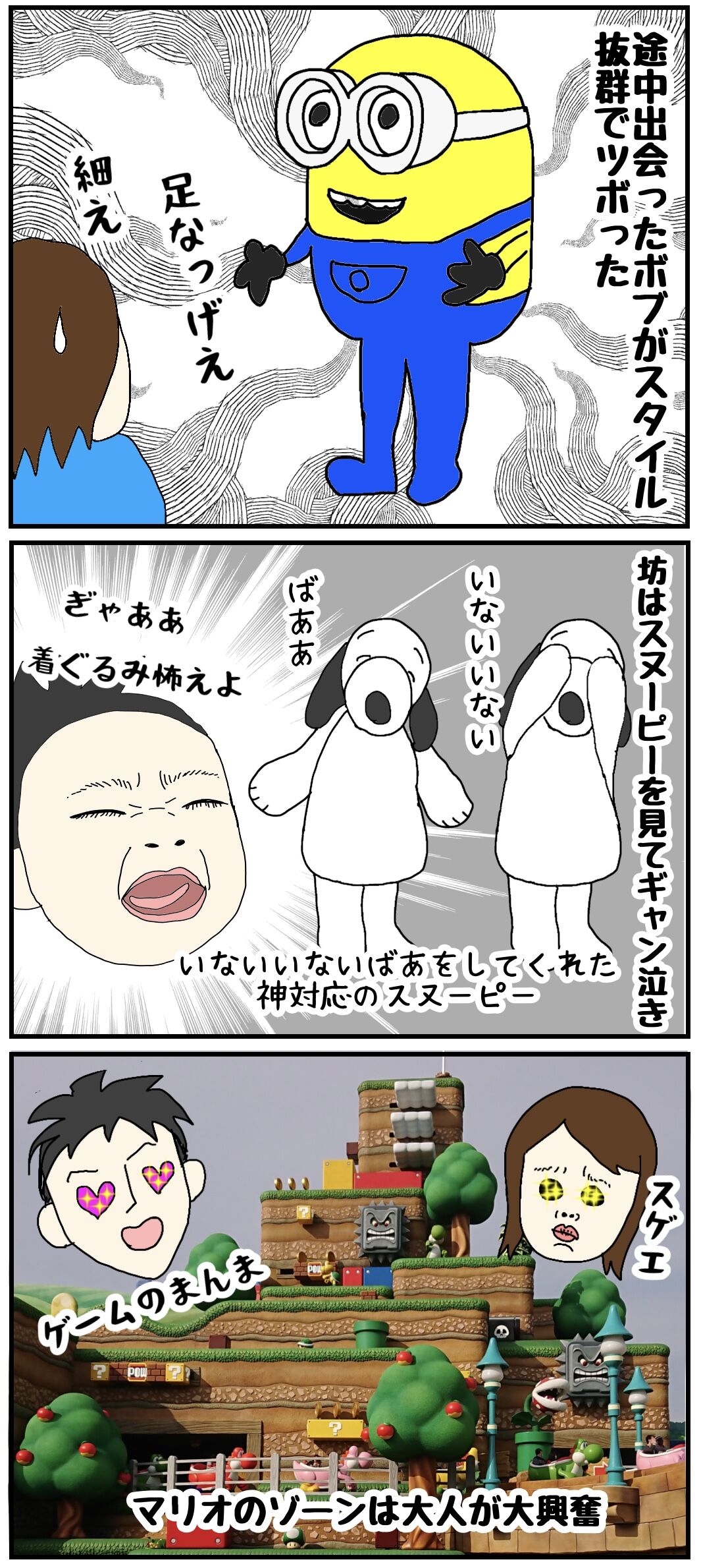 坊とはじめての旅行③ 2021年12月03日 11:34 ココが夢の国とはちょいと違うね。いいよいいよ好きだわ大阪。 「こども」カテゴリの最新記事 タグ :#おでかけ#姉妹#育児絵日記#育児漫画 < 前の記事次の記事 > コメント コメント一覧 (2) 1. 2児まま 2022年02月26日 06:27 ずっと更新楽しみに待ってます! お忙しいとは思いますが、また時間が出来たら再開してくれると嬉しいです(*˙ᵕ˙ *) 0 ekori200 がしました 2. えこり 2022年02月27日 08:38 >>1 ありがとうございます!そして更新途絶えてしまい申し訳ないです。実は絵を書くのが苦手で…笑 育児に追われ書けないでいます。余裕があるときは書いてみよう‥かな。 0 ekori200 がしました コメントフォーム 名前 コメント 記事の評価 リセット リセット 顔 星 情報を記憶 コメントを投稿する