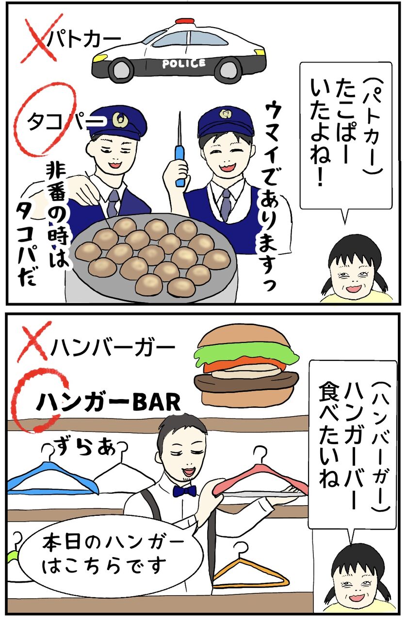 ちんの言い間違えシリーズ③ 2024年09月08日 21:00 ハンバーガー、ハンバーガー、ハンガーバー、はんがーばー…ずっと言ってるとどっちが正しいのか分かんなくなる…言い間違いシリーズ↓ 「こども」カテゴリの最新記事 タグ :#次女#言い間違い < 前の記事次の記事 > コメント コメントフォーム 名前 コメント 記事の評価 リセット リセット 顔 星 情報を記憶 コメントを投稿する