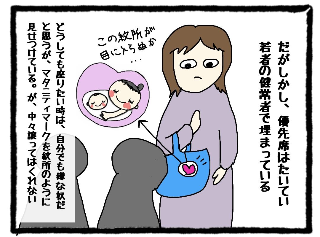 妊婦だって優先席に座りたい 2020年11月29日 21:22 妊婦は幅取るから電車乗るなとかいうけど、働いている限りそうゆう訳にはいかない。在宅勤務もやってるけど、どうしても出社しないといけない仕事もある。妊婦は病気ではないが、立っているとツライのだ。初期は主につわりで、中期以降は血流が増えて血液が薄くなり、貧血になりやすい。後期は大きなお腹でバランスが悪く、立ってると危ない。という訳で、妊婦と優先席の戦いです。妊婦に限らず、ヘルプマークをつけた人や杖をついてる人など、優先席を求めている人がいることを忘れないよう、私も気をつけようと思う日々です。 「日常」カテゴリの最新記事 タグ :#優先席#妊婦#マタニティマーク < 前の記事次の記事 > コメント コメントフォーム 名前 コメント 記事の評価 リセット リセット 顔 星 情報を記憶 コメントを投稿する