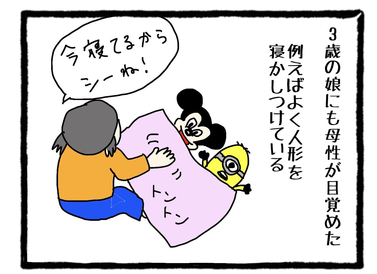 3歳児の母性 2021年03月05日 11:30 保育園で下の学年の子の面倒を見たりしてるみたいなので、先生のマネをして寝かしつけたり手を繋いだりしてお姉さん気分らしい。もうすぐ赤ちゃんが産まれるので、赤ちゃんも可愛がってくれるといいけど。なんせお姉さんの自分自己満足してる感が強い。 「こども」カテゴリの最新記事 タグ :#3歳#母性#育児絵日記#育児漫画#育児あるある < 前の記事次の記事 > コメント コメントフォーム 名前 コメント 記事の評価 リセット リセット 顔 星 情報を記憶 コメントを投稿する